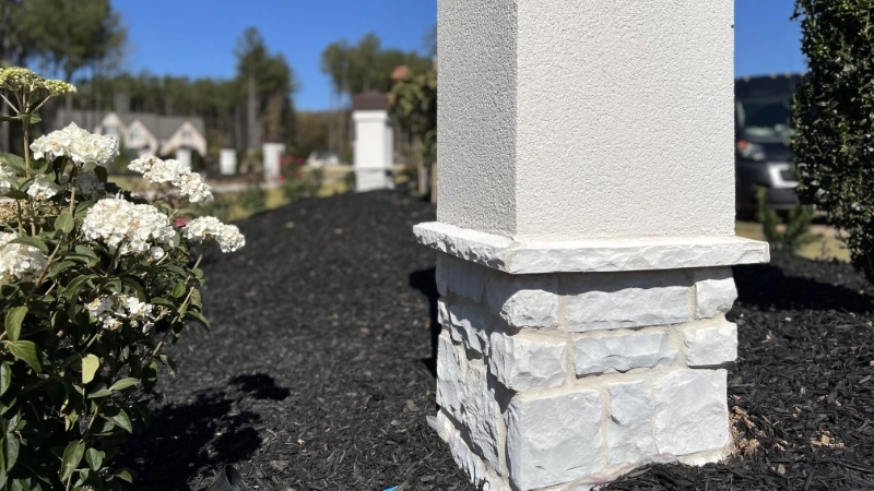 This completely custom home build blends contemporary design with classic stone elegance. We installed a full EIFS system for smooth, energy-efficient exterior walls, then added Rubble stone veneer in Hermitage color to create dramatic contrast and texture along the foundation and architectural features.